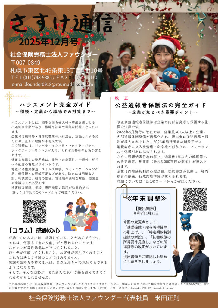 事務所便り「さすけ通信」:2025年12月号を掲載します。 この投稿記事についての《問合せ》は ●「電話:080-3268-4215 」 又は 「こちらのフォーム(メール)」でお申込み下さい。 株式会社ファウンダー / […]
